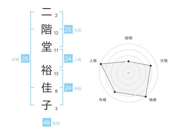 二階堂 裕佳子さんを姓名の画数から五運を鑑定
