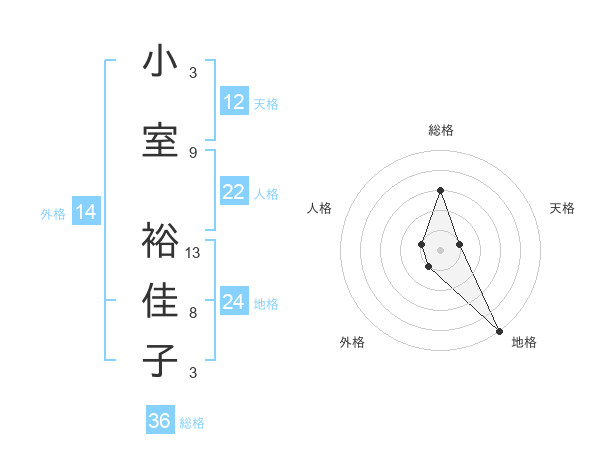 小室 裕佳子さんを姓名の画数から五運を鑑定