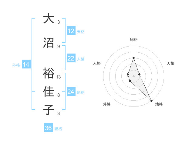 大沼 裕佳子さんを姓名の画数から五運を鑑定