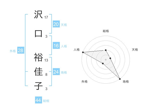 沢口 裕佳子さんを姓名の画数から五運を鑑定