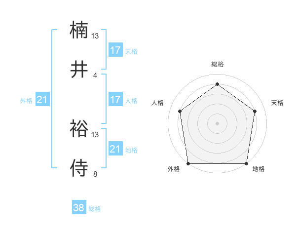 楠井 裕侍さんの地格は21画の5点!