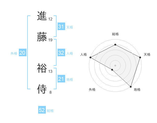 進藤 裕侍さんの総格は52画の4点!