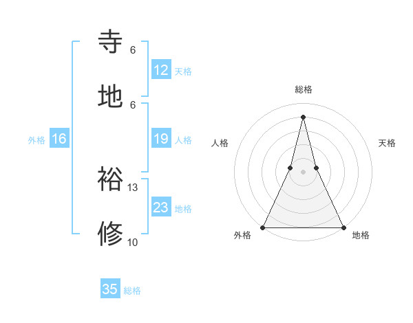 寺地 裕修さんを姓名の画数から五運を鑑定