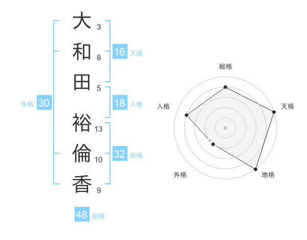 大和田 裕倫香さんを姓名の画数から五運を鑑定