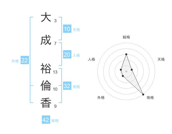 大成 裕倫香さんを姓名の画数から五運を鑑定