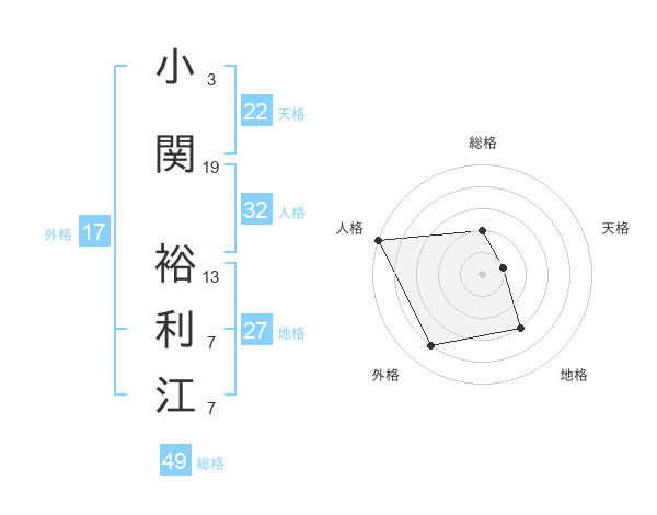 小関 裕利江さんを姓名の画数から五運を鑑定
