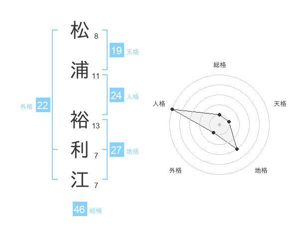 松浦 裕利江さんを姓名の画数から五運を鑑定
