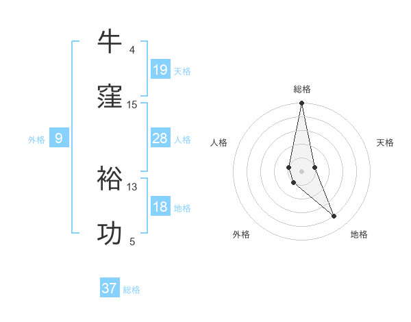 牛窪 裕功さんの総格は37画の5点!