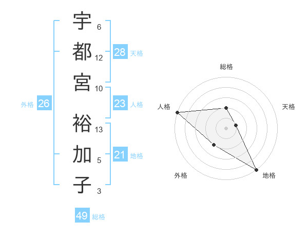宇都宮 裕加子さんを姓名の画数から五運を鑑定