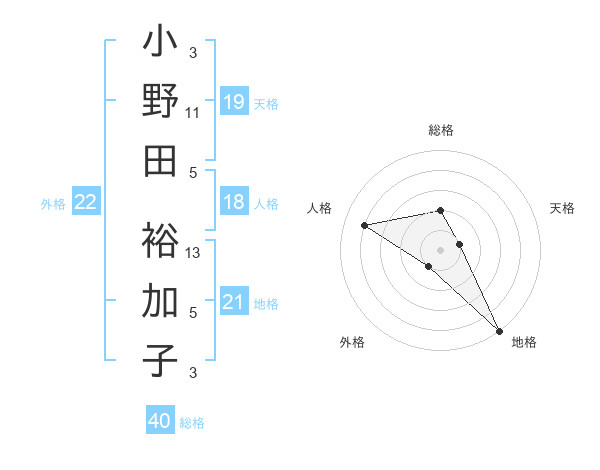 小野田 裕加子さんの総格は40画の2点!