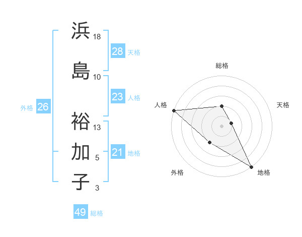 浜島 裕加子さんの総格は49画の2点!