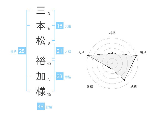 三本松 裕加様さんを姓名の画数から五運を鑑定
