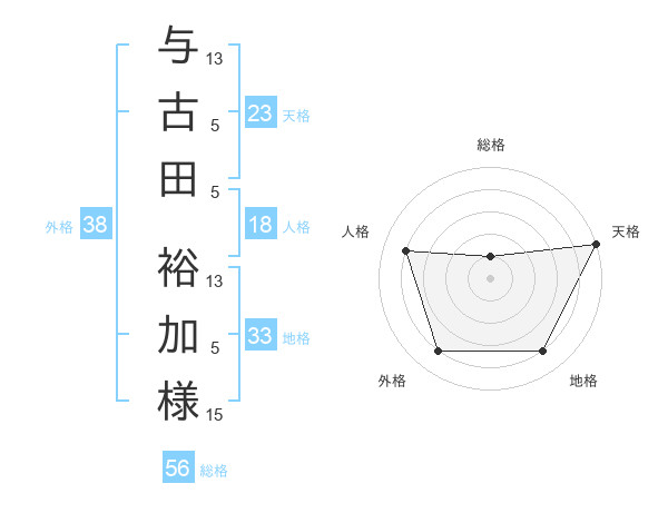 与古田 裕加様さんを姓名の画数から五運を鑑定