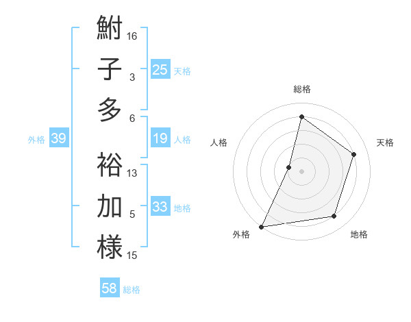 鮒子多 裕加様さんを姓名の画数から五運を鑑定