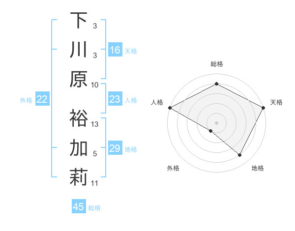 下川原 裕加莉さんを姓名の画数から五運を鑑定