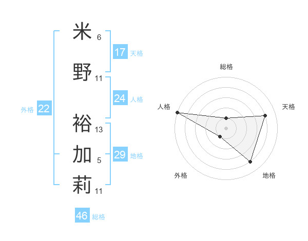 米野 裕加莉さんを姓名の画数から五運を鑑定