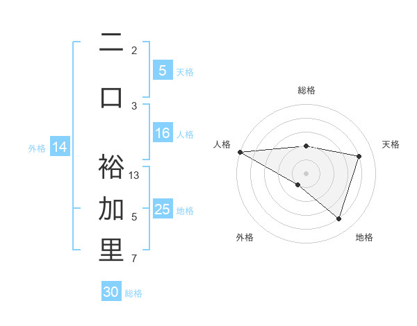 二口 裕加里さんを姓名の画数から五運を鑑定