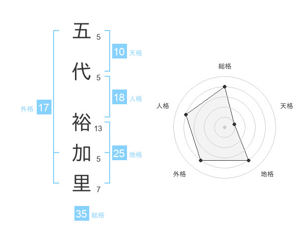 五代 裕加里さんを姓名の画数から五運を鑑定