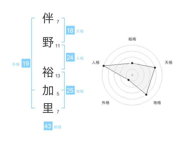 伴野 裕加里さんの外格は19画の1点!