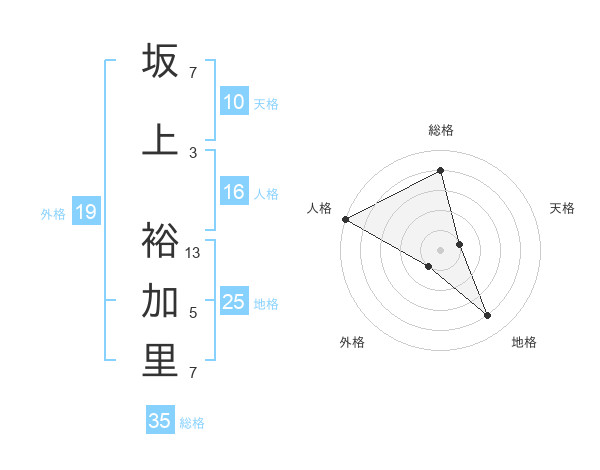 坂上 裕加里さんを姓名の画数から五運を鑑定
