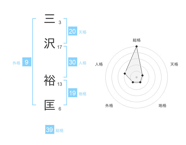三沢 裕匡さんの総格は39画の5点!