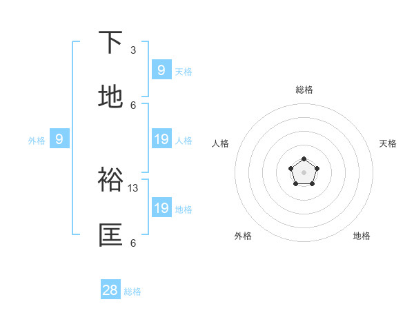 下地 裕匡さんを姓名の画数から五運を鑑定