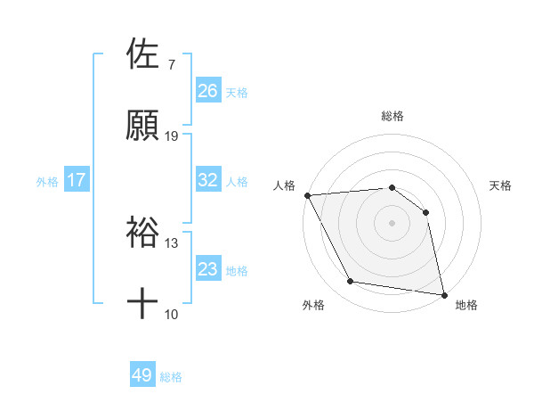 佐願 裕十さんを姓名の画数から五運を鑑定
