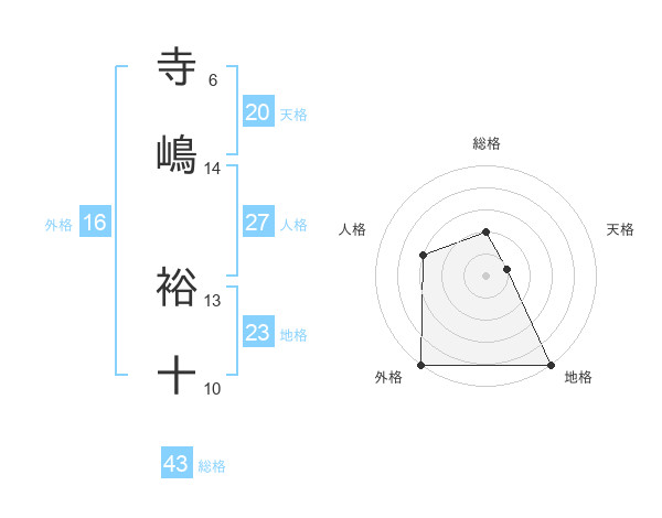 寺嶋 裕十さんの外格は16画の5点!