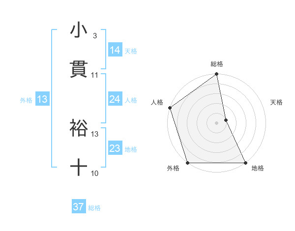 小貫 裕十さんの総格は37画の5点!
