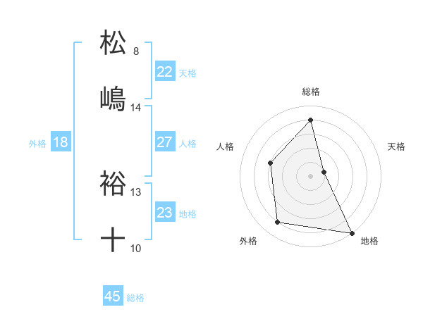 松嶋 裕十さんを姓名の画数から五運を鑑定