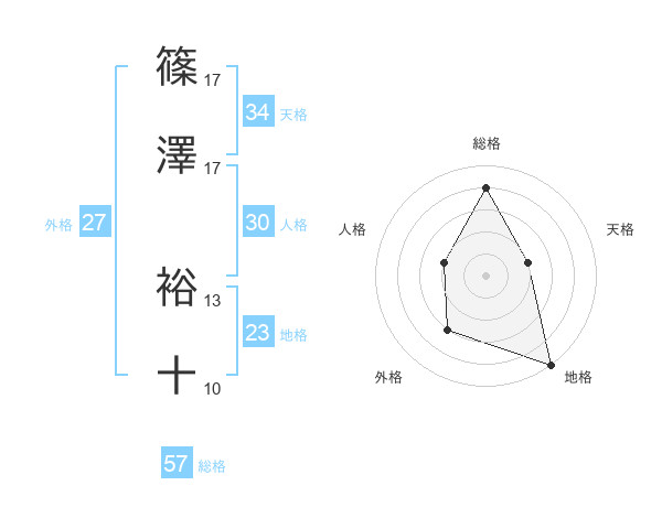 篠澤 裕十さんを姓名の画数から五運を鑑定