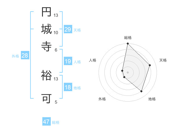 円城寺 裕可さんを姓名の画数から五運を鑑定