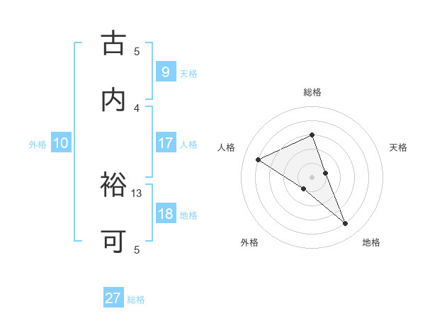 古内 裕可さんの総格は27画の3点!