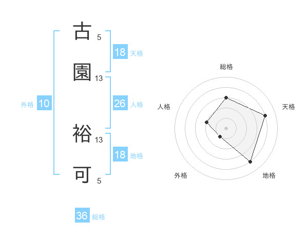 古園 裕可さんを姓名の画数から五運を鑑定