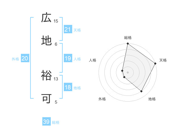 広地 裕可さんの天格は21画の5点!
