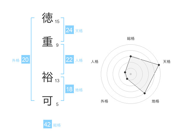 徳重 裕可さんを姓名の画数から五運を鑑定