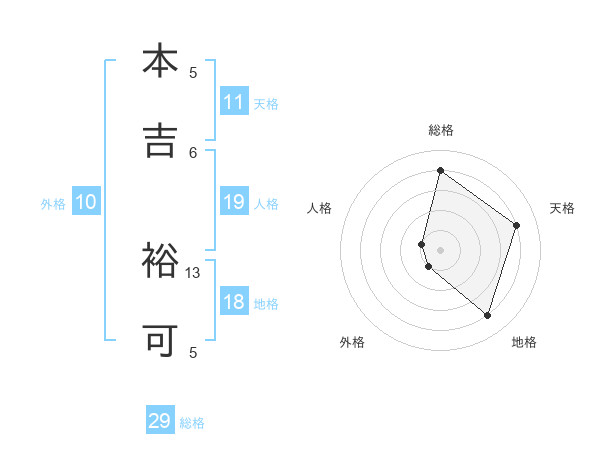 本吉 裕可さんの総格は29画の4点!