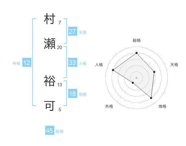 村瀬 裕可さんの総格は45画の4点!