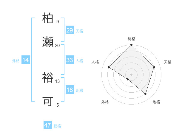 柏瀬 裕可さんを姓名の画数から五運を鑑定