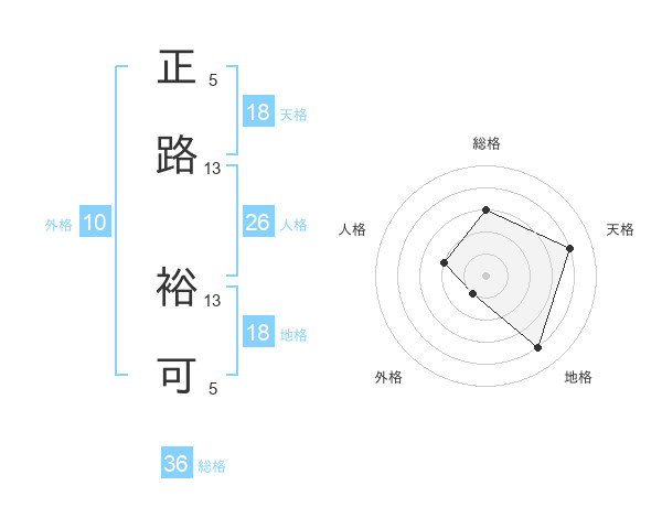 正路 裕可さんの天格は18画の4点!