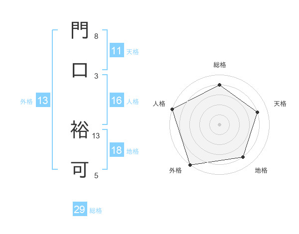 門口 裕可さんの総格は29画の4点!