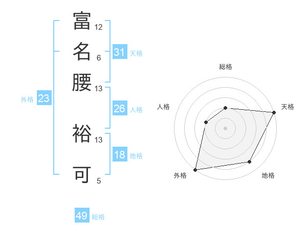 富名腰 裕可さんを姓名の画数から五運を鑑定