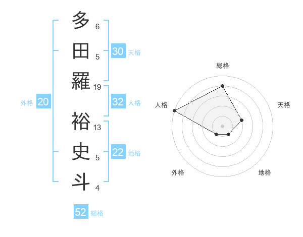 多田羅 裕史斗さんを姓名の画数から五運を鑑定
