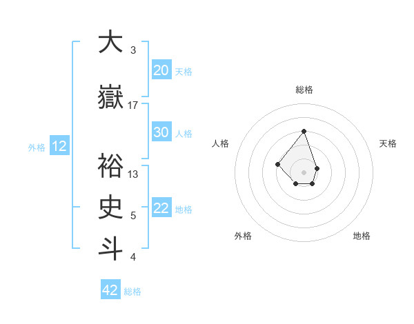 大嶽 裕史斗さんを姓名の画数から五運を鑑定