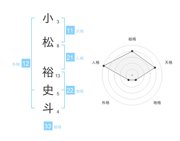 小松 裕史斗さんの総格は33画の4点!