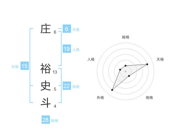 庄 裕史斗さんを姓名の画数から五運を鑑定