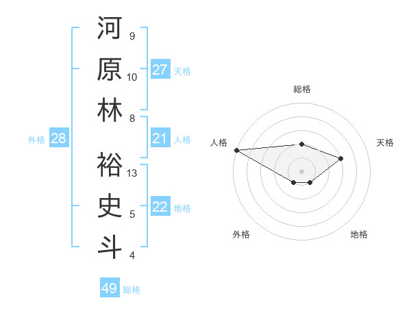 河原林 裕史斗さんを姓名の画数から五運を鑑定