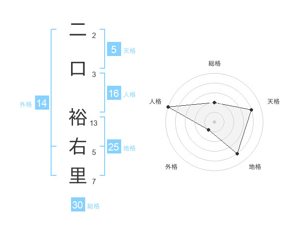 二口 裕右里さんを姓名の画数から五運を鑑定