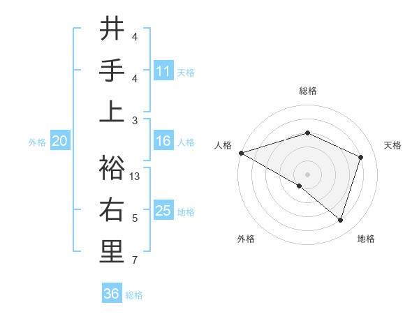 井手上 裕右里さんの天格は11画の4点!