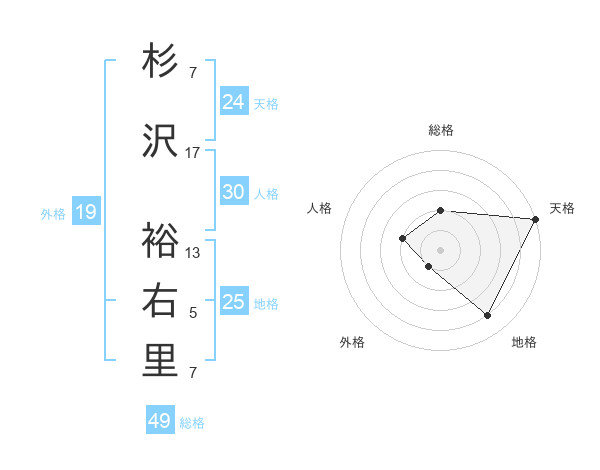杉沢 裕右里さんを姓名の画数から五運を鑑定